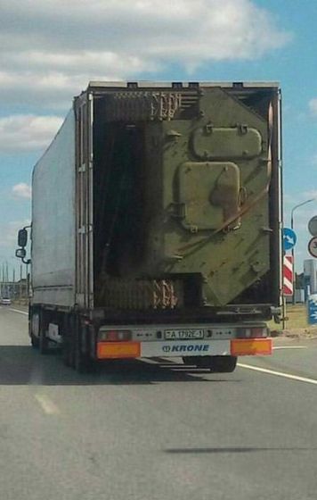 Yolda karşılarında bir kamyonun kasasında tank olduğunu gören insanlar bu görüntü karşısında şaşırıp kaldı.