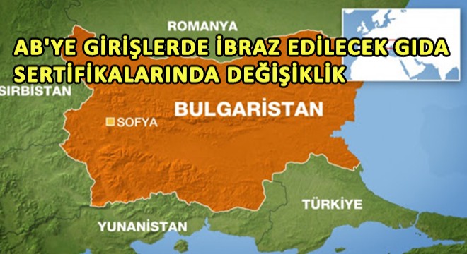Bulgaristan Gıda Güvenliği Ajansınca halihazırda yola çıkmış olan ve sertifikası düzenlemede öngörüldüğü şekilde olmayan araçlar için, düzenlenecek yeni sertifikanın bip.k.andeervo@gmail.com e-mail adresine iletilmesi yoluyla kabulüne ay sonuna kadar (30.04.2021) müsaade edilebileceği iletilmiştir.