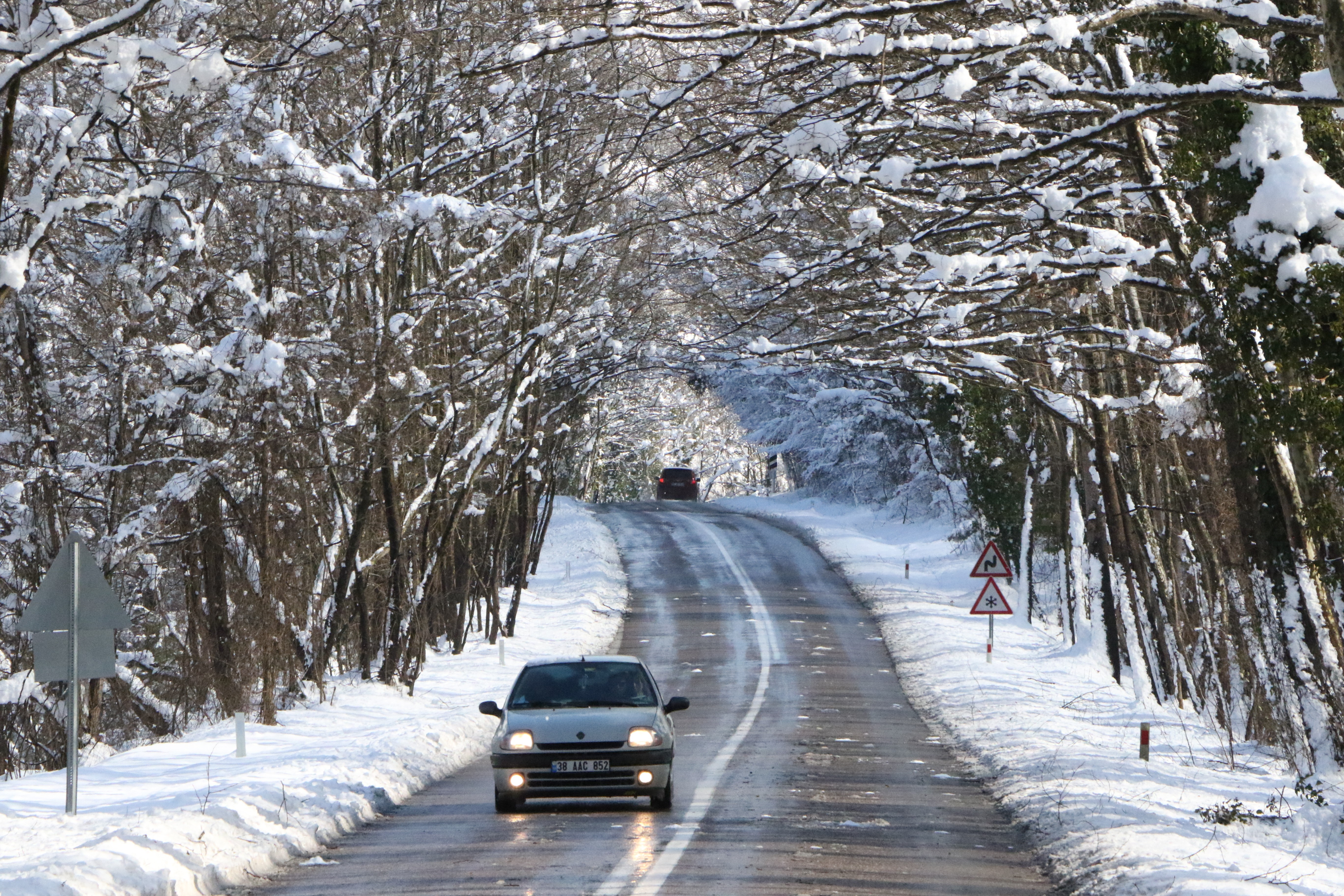 İlçenin doğa turizmine önemli bir katkı sunan masalsı ağaç tüneller, kar yağışıyla birlikte eşsiz bir güzelliğe büründü.