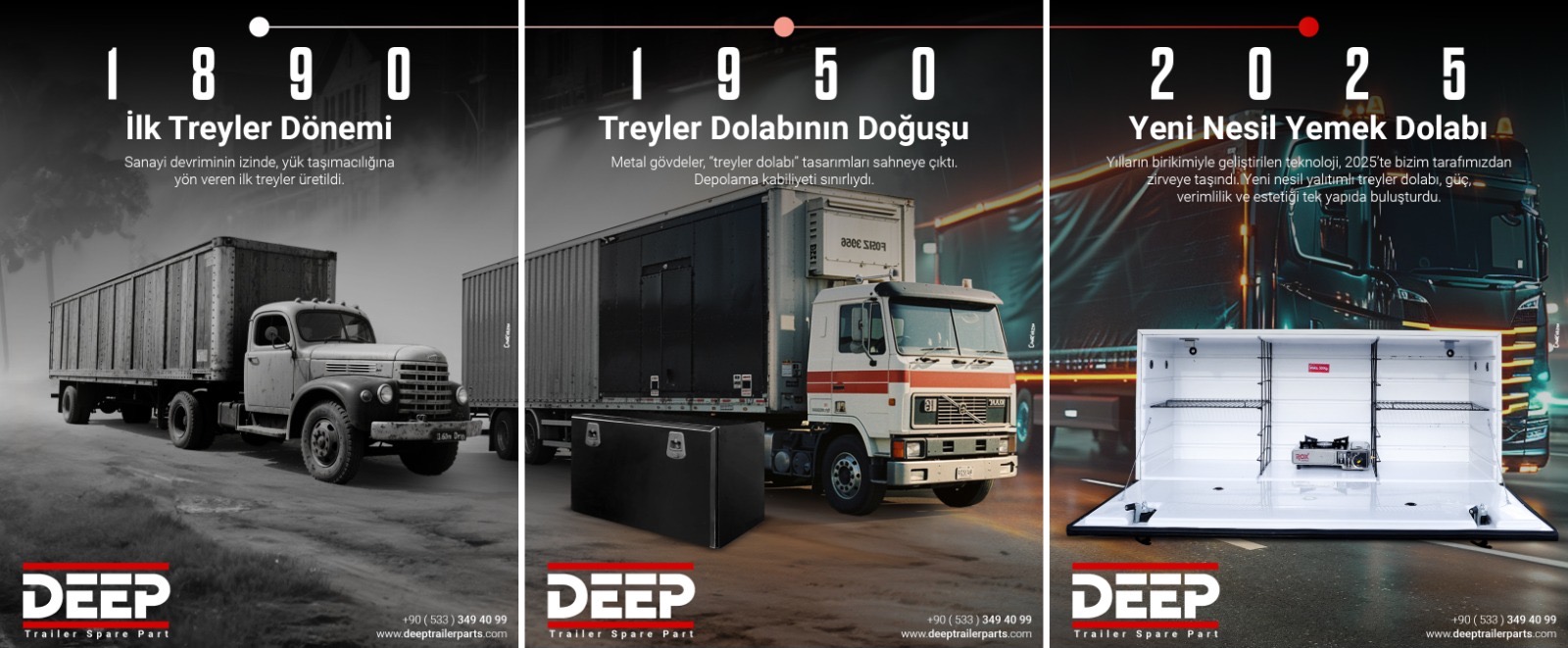 Deep Trailer Spare Parts, son olarak treyler yemek ve takım dolaplarında yaşanan sorunları dikkate alarak yola çıktı. Tır şoförlerinin öneri ve görüşlerinden yararlanarak, sac dolaplarda görülen toz ve su alma, yüksek sıcaklık ve soğukta ürünleri muhafaza edememe gibi sorunlara kalıcı çözümler geliştiren firma, geliştirdiği yeni nesil treyler dolaplarını seri üretime hazır hale getirdi.