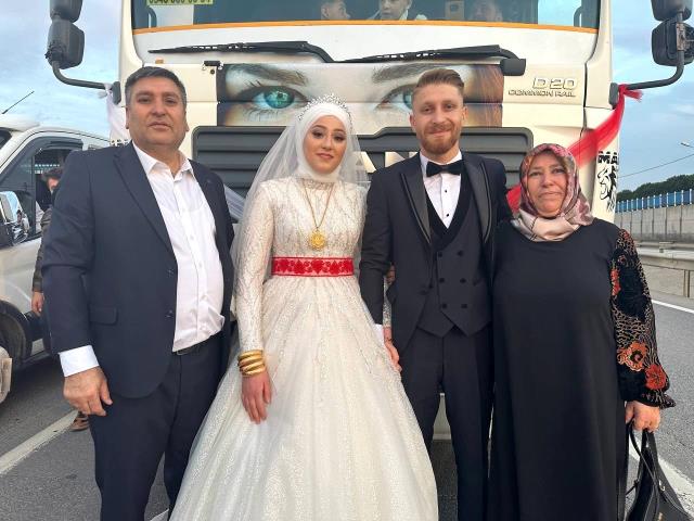 Damat Yunus Emre Dalkılıç, nikah töreni için kız almaya giderken gelin arabası olarak şoförlüğünü yaptığı tırı kullandı. Erkek tarafı, gelin arabası olan tır ile kız evine gitti. Ardından çift, nikah salonuna doğru giderken, düğün konvoyuna damadın arkadaşları da tırlarıyla eşlik etti. Renkli anlara sahne olan düğün konvoyunun caddede kornalar çalarak tur atması görenleri şaşkına çevirdi.