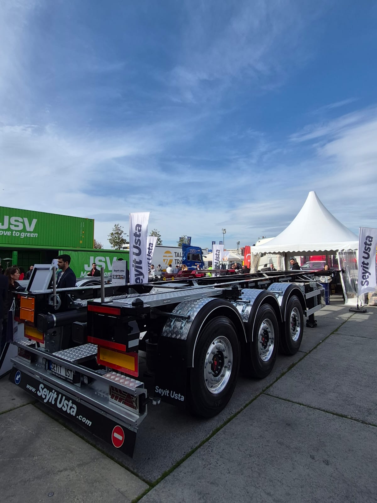 Logitrans Fuarı’nda 40 ft. teleskopik konteyner taşıyıcı ve 30 ft. tank konteyner taşıyıcı modelleri ile sahne alan Seyit Usta Treyler, ziyaretçilerden yoğun ilgi gördü. Amiral gemilerinden birinin fuarda sergiledikleri 40 ft. teleskopik konteyner taşıyıcı olduğunu söyleyen Arslan, bunun yanı sıra ihracatta ise aynı ürünün 45 ft.’lik olanın tercih edildiğini aktardı.
