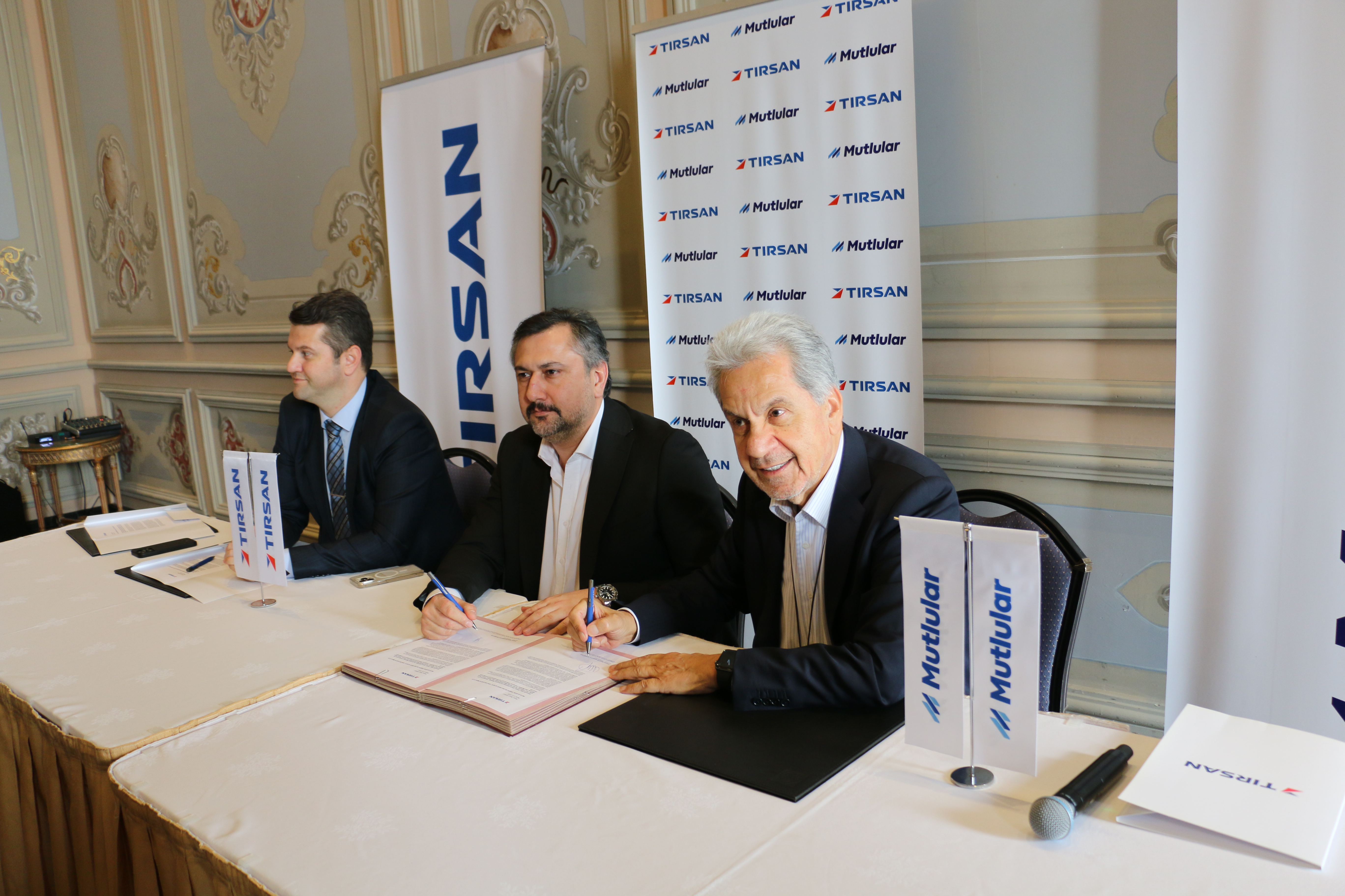 Mutlular Transport’un yeni intermodal tenteli perdeli araçlarının teslimatı ve yeni yatırımının imza töreni Çırağan Palas Kempiski Otelinde Tırsan Treyler Yönetim Kurulu Başkanı Çetin Nuhoğlu, Mutlular Transport Yönetim Kurulu Üyesi Mutluhan Akan ve Tırsan Treyler Satış İcra Kurulu Başkanı Ertuğrul Erkoç’un katılımı ile gerçekleştirildi.