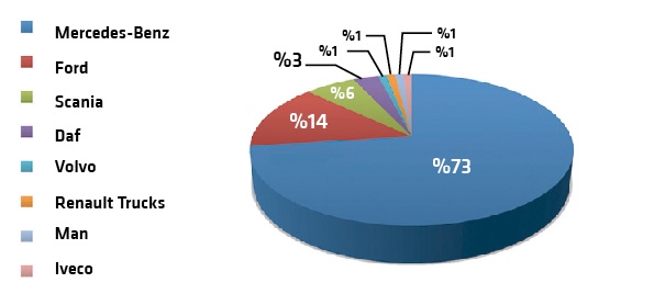 Köprü niteliğiyle Avrupa ve Asya’yı birbirine bağlayan; sanayi, ticaret, tarım ve turizmin oldukça geliştiği bir bölge olan Marmara Bölgesi’nde faaliyette olan ve ulaşılabilen firma ve kooperatiflerle yaptığımız görüşmeler sonucunda, %46.70’lik bir oranla Mercedes, Marmara Bölgesinin en çok tercih edilen markası olma unvanını kazandı. Mercedes’i %11’lik bir oranla Ford Trucks takip ederken, üçüncü sıraya ise %8.9’luk bir oranla Volvo geldi.