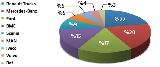 Türkiye’nin en uzun kıyı şeridine sahip olan ve kentleşmenin en yoğun yaşandığı bölge konumunda olan Ege Bölgesi’nin fatihi % 22’lük bir oranla Renault oluyor. %20’lik bir oranla onu Mercedes takip ederken Ford Trucks ise %17’lik bir oranla üçüncü sıraya oturuyor.