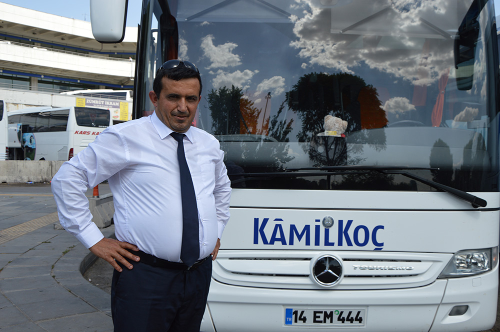 10 yıldır otobüs şoförlüğü yapan Cengiz Ergüder, 2007 Model Mercedes-Benz Travego aracıyla Çorum (Alaca)-Ankara arasında yaklaşık 430 km yolu her gün gelip gidiyor. İnsanları sevdiklerine kavuşturmanın mutluluğuna tanık olmanın eşsiz bir sevinç kaynağı olduğunu söyleyen Cengiz Ergüder, yaptıkları mesleğin daha saygın bir konuma getirilmesini istiyor. Araçların ve yolların zamanla çok iyi bir noktaya geldiğini ifade eden Ergüder, sosyal haklarının da iyileştirilmesini bekliyor.